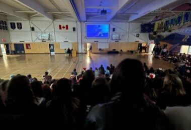 終業式では校長先生の貴重なお話を聞くことができたり生徒が作った面白いビデオを見たりみんなでダンスしたりしました。