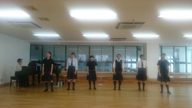 オープニングは芙蓉が丘講堂。最初に合唱部が爽やかなハーモニーをお届けし、続いて生徒会が制服紹介をしました。