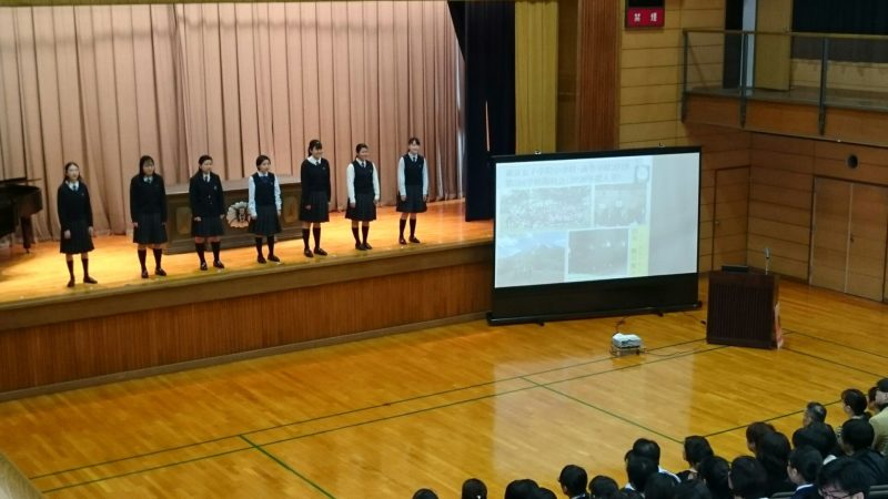 プログラムの枠組みは前回と同じく校長の挨拶とアピール、中高別・コース別の説説明や体験、校内見学、個別相談、ランチ体験。内容は全部新たなものとし、本校のいろいろな面をご理解いただく機会としました。また、今回のオープニングの生徒発表では、合唱部が爽やかなハーモニーを皆様にご披露しました。