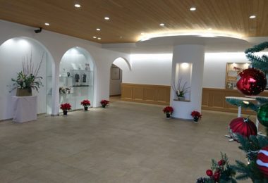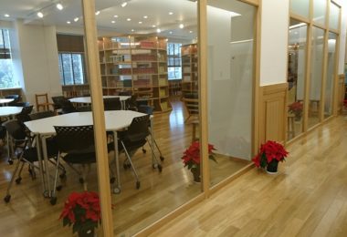 先日エントランスホールにクリスマスツリーが飾られましたが、クリスマスムードを盛り上げるポインセチアがエントランスから廊下にかけて置かれ赤と緑の鮮やかな色で生徒を迎えています。